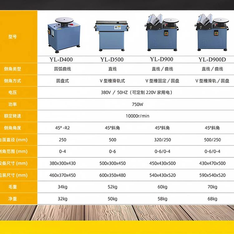 A Yueli gyár asztali többfunkciós letörőgépe egyedülálló, kettős szerkezetű kialakítással rendelkezik: "tárcsa típusú" és "V-horonyú csúszósín típusú".