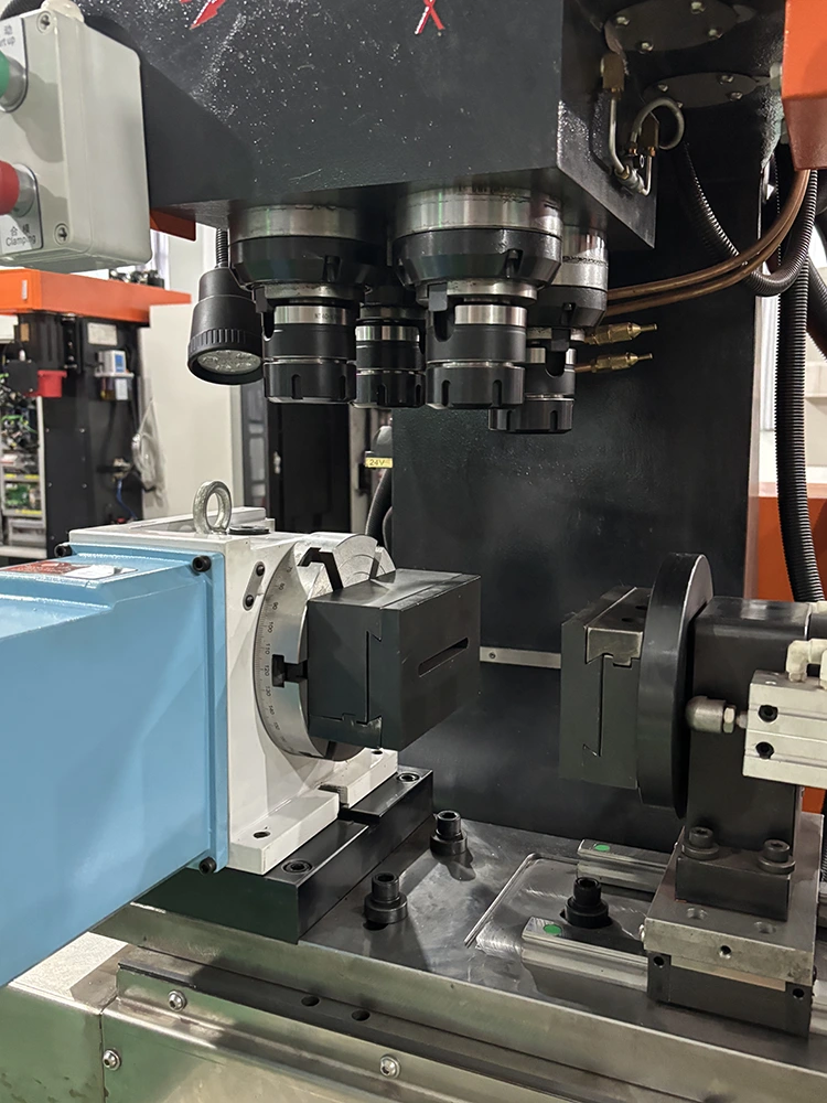 A gyár elhagyása előtt a többfunkciós 4 orsós fúró menetfúró gépet lézeres berendezéssel ismételten tesztelik, hogy biztosítsák a vezetősínek egyenességét és vízszintességét. A szerszámgép beépített hibakompenzációs funkcióval rendelkezik, amely hosszú távú használat után is megőrzi a pontosságot. A nagy ismétlődő pozicionálási pontosság biztosítja, hogy a szerszámcserék ne befolyásolják a pontosságot.