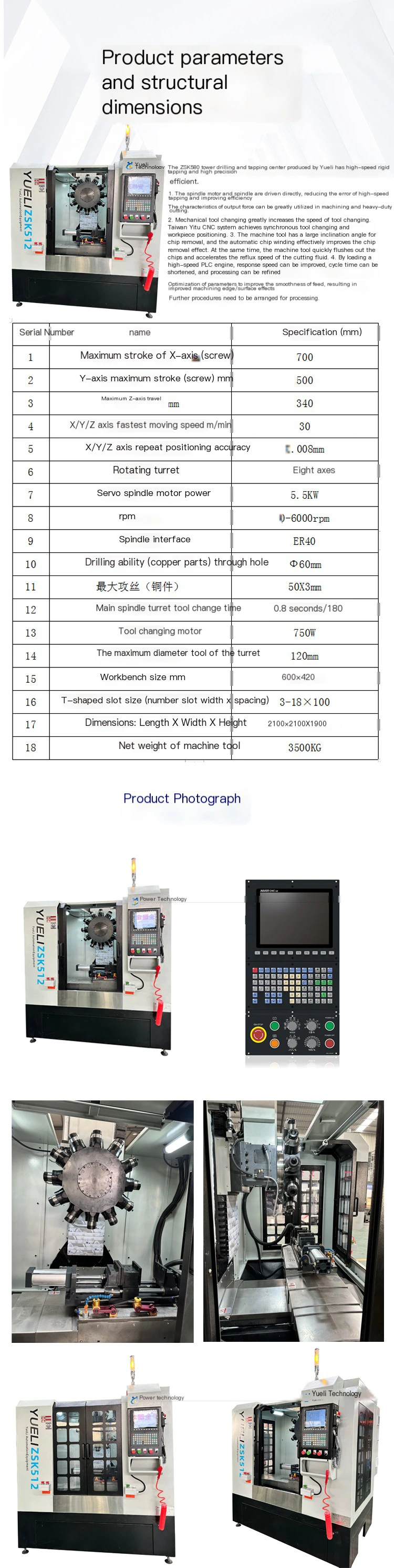 A Yueli toronyfúrást és megérintés központját állítja elő, nagysebességű merev megcsapolással, nagy pontossággal és nagy hatékonysággal.